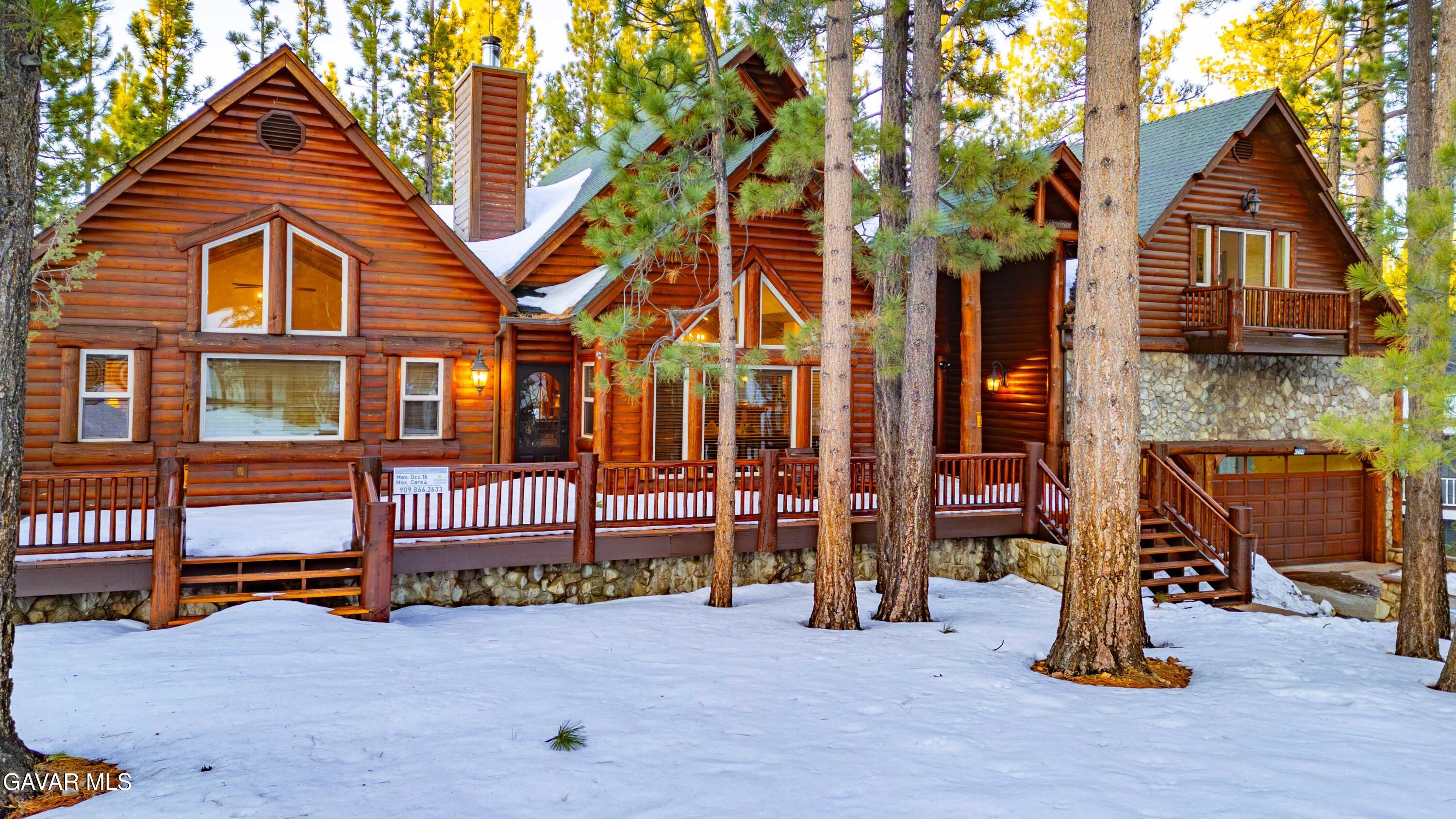 Stunning views from this one-of-a-kind log style home located in one of Big Bear Lake's most coveted areas. This home offers a prime position between both major ski resorts -- Nestled in upscale Heavenly Valley Estates, the home sits just ~4-minute drive (or an easy 15-18 minute stroll) to Snow Summit and ~5-minute drive to Bear Mountain. Few Big Bear locations offer this effortless access to both resorts in one stay. Quiet, private, forested luxury setting in an exclusive neighborhood -- Heavenly Valley Estates features custom homes on large lots (this one: 0.35 acres) with sylvan privacy, mature trees, and underground utilities (no overhead power poles spoiling views or photos). It delivers a peaceful upscale escape with photogenic, high-end curb appeal featuring a log-home style, expansive redwood deck with hot tub, and pristine mountain-forest backdrop. The open floorplan is perfect for entertaining and hosting, featuring a spacious living room with a fireplace that connects to the dining area, kitchen and bar. The entertainer's kitchen features a large center island with ample seating and extensive counter space. There are 4 bedroom and 3.5 bathrooms. Three of the bedrooms are luxurious suites, each with its own bathroom and closet. An additional bunk room is located above the garage. Outside you will find an expansive red wood deck where you can relax in the hot tub or entertain guests while enjoying the fresh mountain air. There is an attached 3 car garage with tall ceilings & ample parking. This property is a highly sought after vacation rental with strong revenue history -- The area (and this exact home when previously rented) supports large groups (sleeps 16 comfortably), 5-star reviews, and $90K+ annual gross in a high-demand pocket. Central-yet-quiet positioning drives better year-round occupancy than slope-distant or overly touristy zones, with easier management due to short drives for cleaners/owners. Guest-friendly logistics & parking -- 3-car garage plus driveway space for multiple vehicles, plus proximity to free Big Bear trolleys/shuttles to resorts and town. Guests rave about hassle-free arrivals/departures--unlike congested Village or lakefront areas with tight parking and traffic during peak seasons. This location combines the best of both worlds--world-class winter ski access + effortless summer lake/Village fun--in a serene, upscale pocket that supports premium pricing and high occupancy with lower "guest friction" than busier or more remote Big Bear spots. It's a turnkey performer for anyone targeting Southern California's ski-and-lake vacation market. This home is a MUST see!